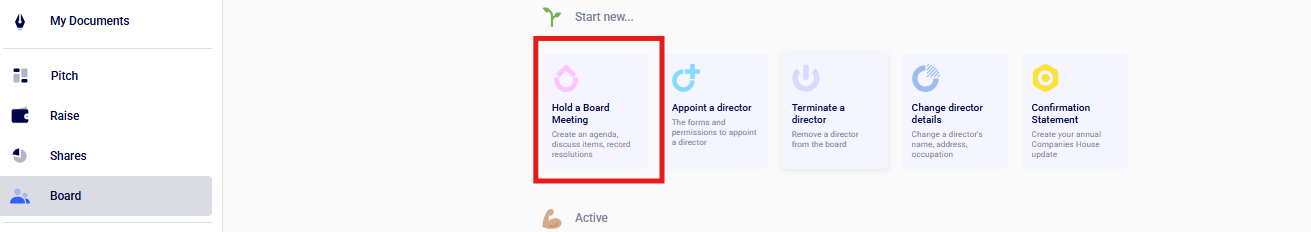 Start by going to Board > Hold a Board Meeting