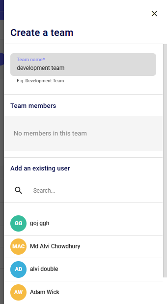 To do this, simply select ‘create a team’, name it, and assign members to join the team.