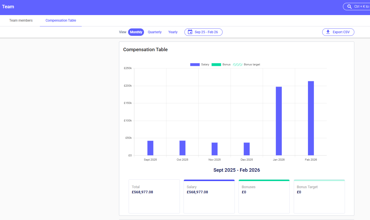 Our team compensation table collects, tracks and displays your employee costs.