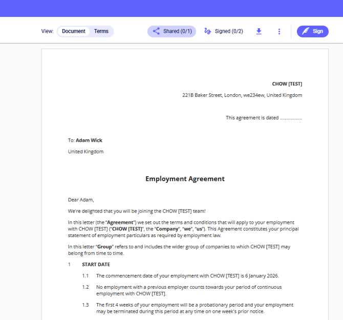 Once you have completed the employment agreement, you can reuse its terms for future agreements, saving you from having to recreate them manually each time.
