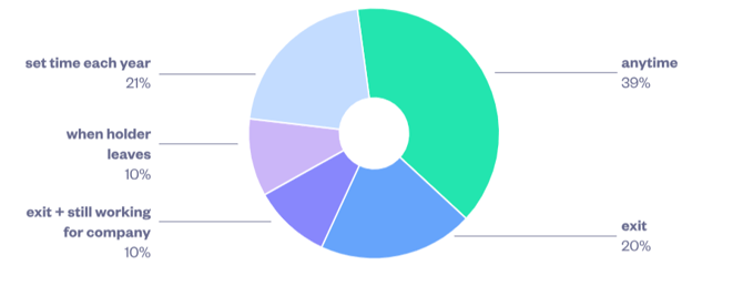 - Anytime - as soon as options vest for an option holder, they are able to exercise them at anytime