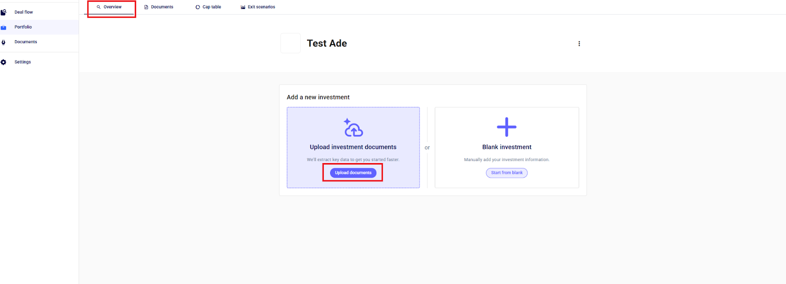 Step 3: Upload Investment Documents