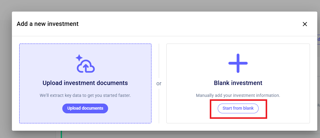 You can do this by clicking the “+ Add Investment” button > Blank Investment > Start from blank.
