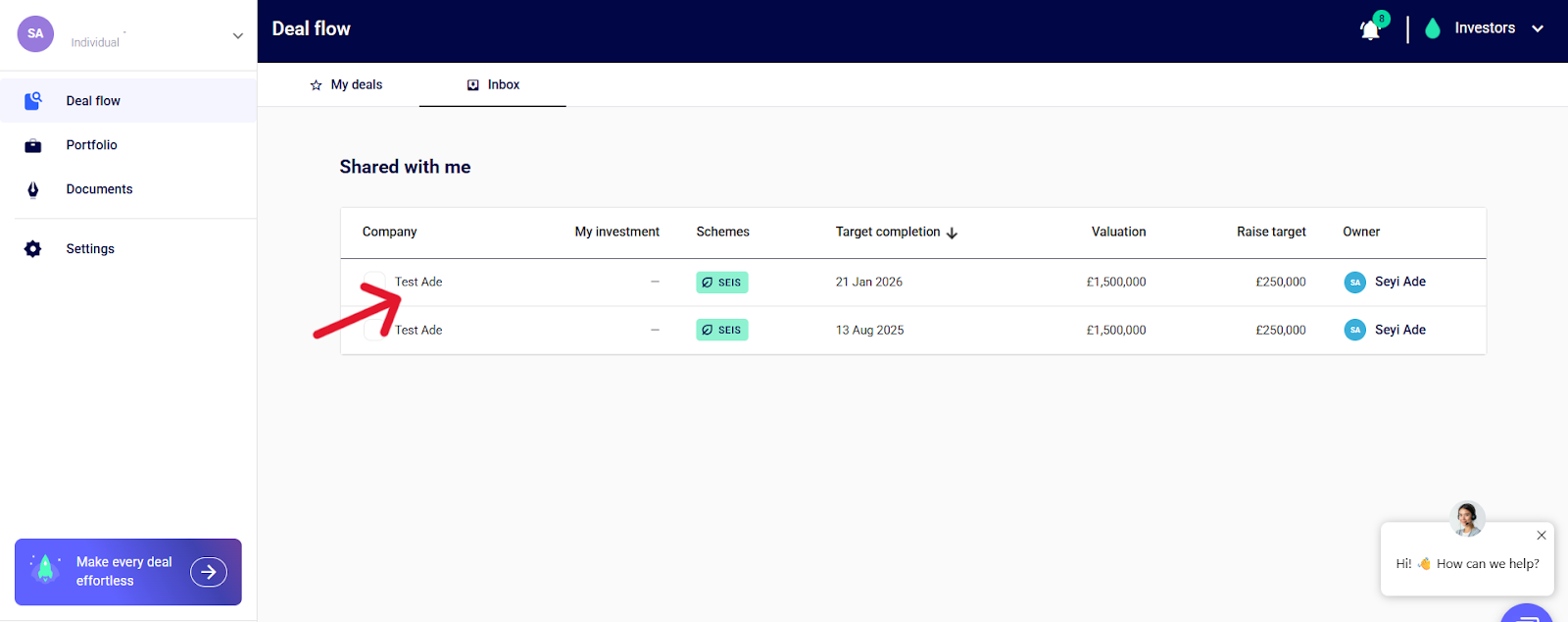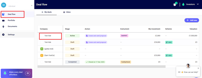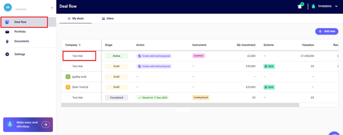 Step 1: Go to the “Deal Flow” section and click the specific deal you want to share.