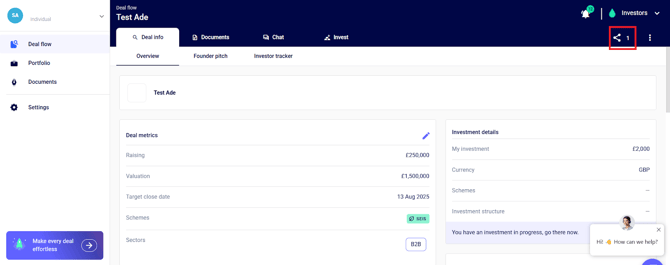 You can now share deals with other investors in your network using the “Share” feature in the Deal Flow section.