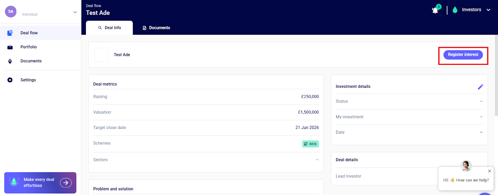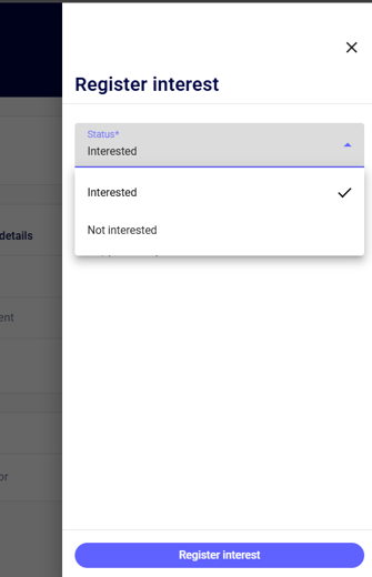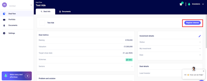 Enter the amount you’re looking to invest, choose the status- Interested, and click Register Interest.