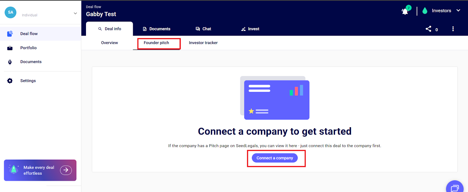 Step 3: Click on the “Founder Pitch” page, and then click “Connect a company”