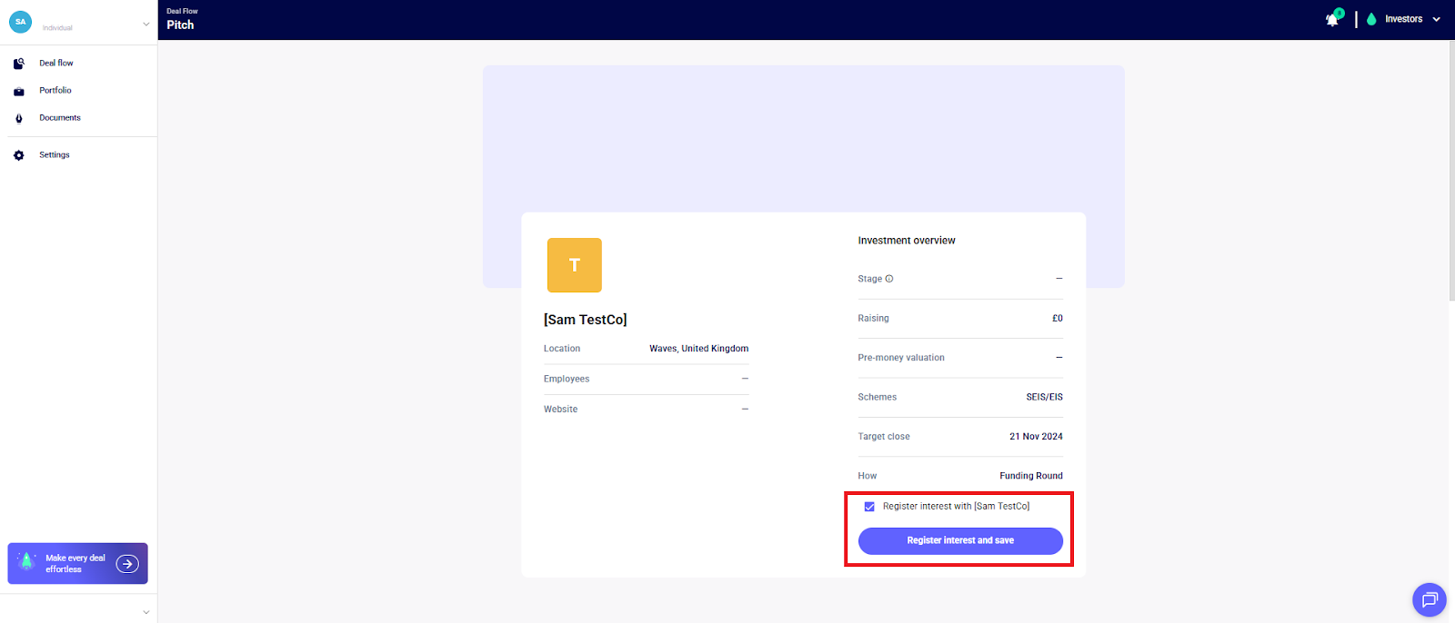 Are you an investor looking to invest in a company on SeedLegals? Do you want to view a company’s pitch page, register your interest and chat with the founders?