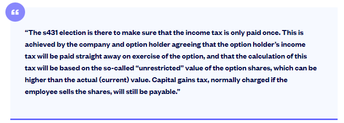 We often get asked about the difference between the NIC Election and S431 Election. Below is a quick summary of the two and you can also read more about this in our blog post: S431 and NIC tax elections: what are these forms for share option holders?
