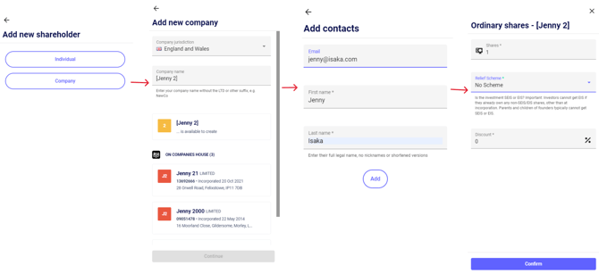 - Then, look for the company - the same way you created yours, if the company is already on SeedLegals you can select it, else you create it