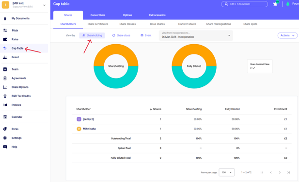 - Go to “Cap Table” in the left bar and get started