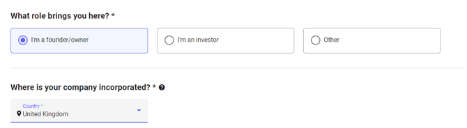 - Make sure to select the United Kingdom or Ireland as the country of incorporation