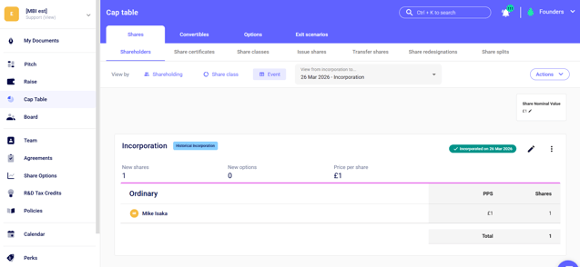 - Here you go, your Cap Table is now set up