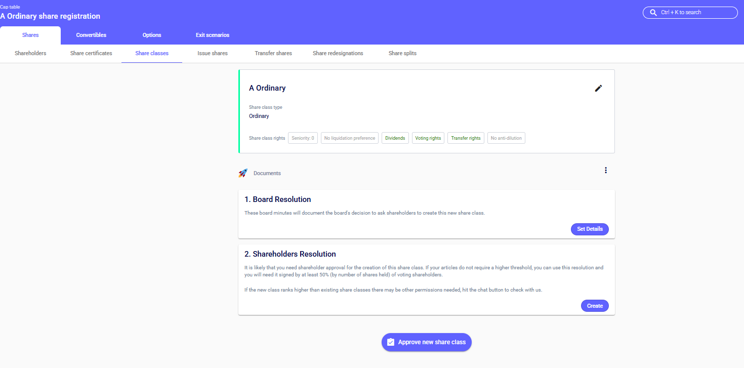 Step-by-step guide on how to create a new share class (with the approval documents) on SeedLegals
