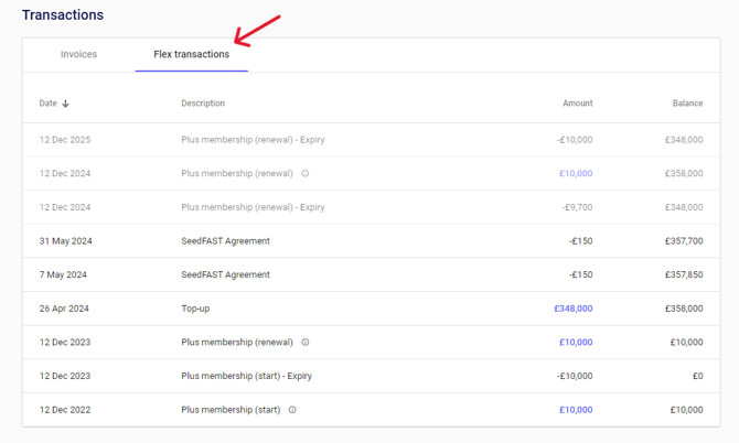 - The £10K Flex Credit you received from your Plus subscription is only valid for the duration of your one-year subscription
