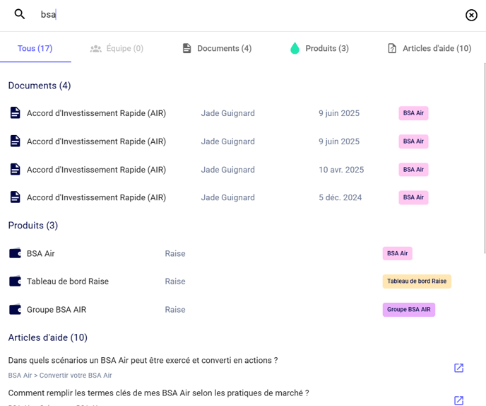 💡La barre de recherche est également connectée au centre d'aide, vous pouvez donc parcourir le centre d'aide depuis la page de votre société.