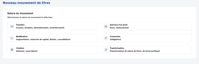 - Cliquez sur mouvement de titres et sélectionnez le type de mouvement approprié.
